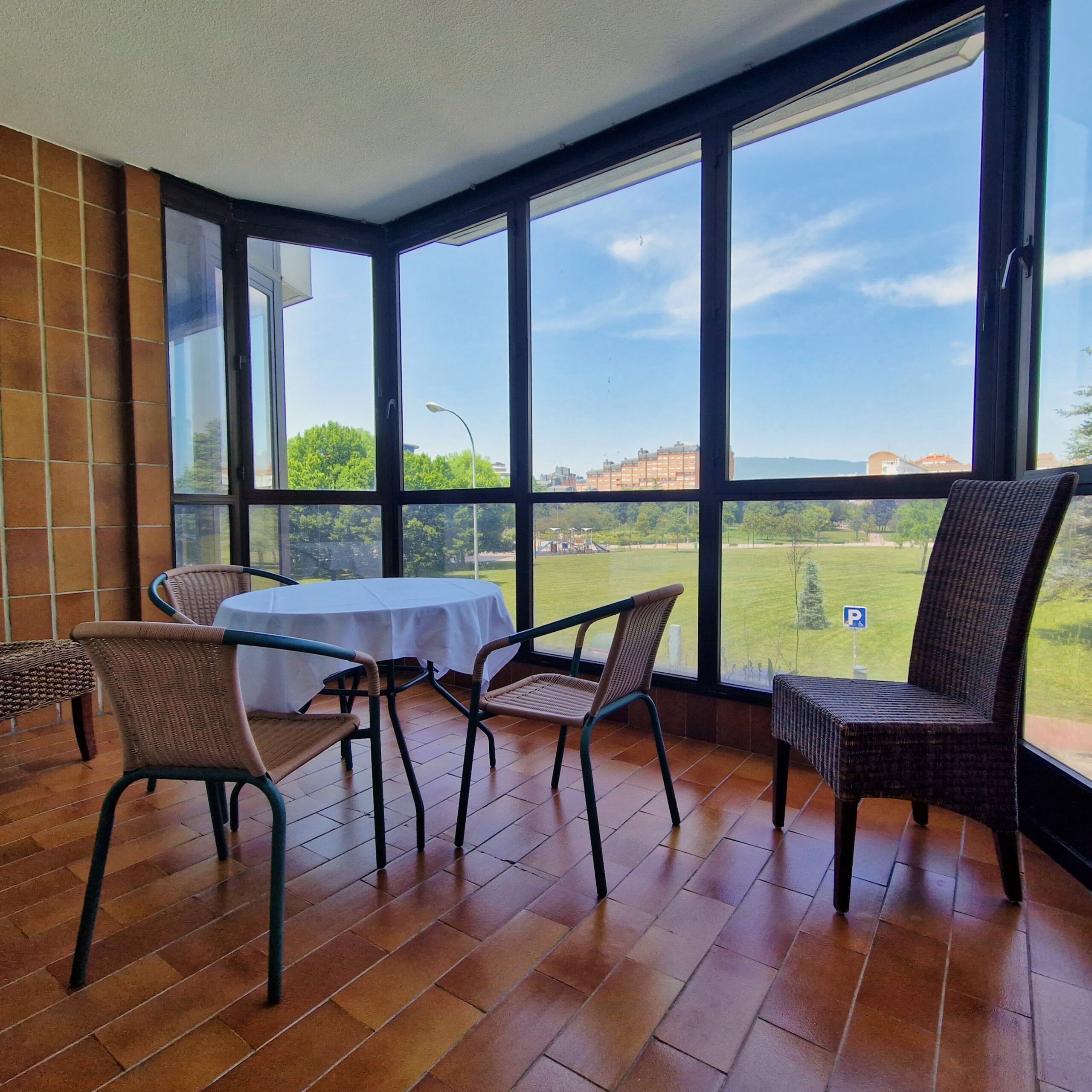 Consta de una cama doble o de dos camas individuales, mesa escritorio, butaca, armario, cómoda, silla, TV, wifi, ventana orientada hacia la ciudad, el parque Yamaguchi o a un patio interior y cuarto de baño con plato de ducha o bañera. Algunas tienen terraza acristalada y cerrada con vistas y algunas tienen acceso a cocina completa (excepto lavadora) y otras a cocina limitada.